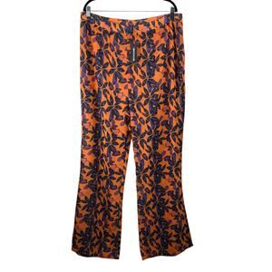 PrettyLittleThing Orange Sheer Floral High Rise Flare Beach Pants 14 Plus NWT