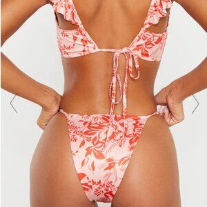 PrettyLittleThing PINK FLORAL RUFFLE BIKINI SIZE MEDIUM