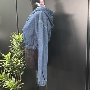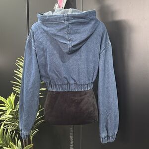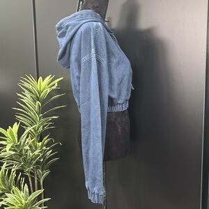 PrettyLittleThing Petite, Cropped Long Sleeve Hoodie,elastic waist & cuffs,denim