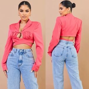 Style: Petite Pink Ruched Bust Cropped Blazer