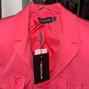PrettyLittleThing Petite Pink Ruched Bust Cropped Blazer