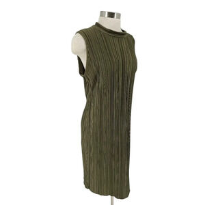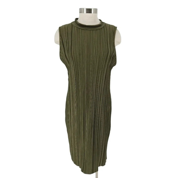 PrettyLittleThing Pleated Bodycon Midi Dress Olive Green Sleeveless