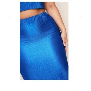 PrettyLittleThing Plus Blue Plise Maxi Skirt Pull-On Resort Coverup