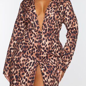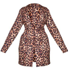PrettyLittleThing Plus Brown Satin Leopard Print Oversized Blazer Dress 2x 20