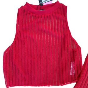 PrettyLittleThing Plus - Distressed Ladder Detail Knit Top & Midi Skirt in Red