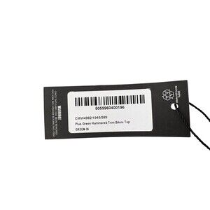 This is a PrettyLittleThing Plus Green Hammered Trim Bikini Top in size 22 for women. The top features a bandeau style with hammered hardware and gold accents, perfect for a sexy beach look. It is made of a polyester blend material consisting of 88% polyester and 12% elastane.