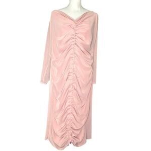 PrettyLittleThing Plus Nude Pink Mesh Ruched Bardot Midi Dress Sz 20 NWT