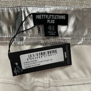 PrettyLittleThing Plus Silver Metallic Coated Straight Leg Pants