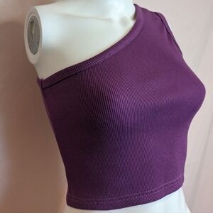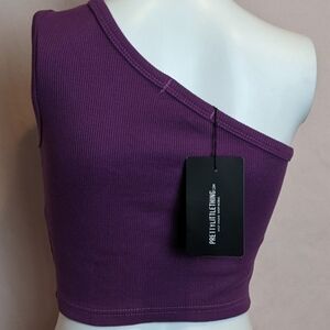 PrettyLittleThing Purple Ribbed One Shoulder Asymmetric Crop Top size 0