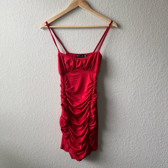 PrettyLittleThing Red Ruched Mini Dress