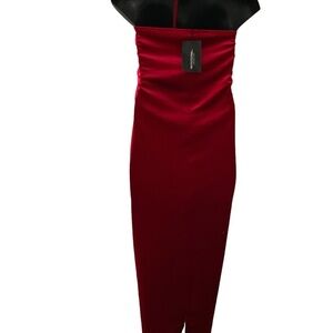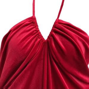 PrettyLittleThing Red Velvet Halter Ruched Midi Party Evening Dress Plus SZ 26
