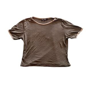 This crop top from PrettyLittleThing showcases a relaxed fit with stylish cuffed short sleeves, perfect for a casual day out. The green and cream color palette adds a refreshing touch to your wardrobe, while the soft fabric ensures comfort throughout the day.