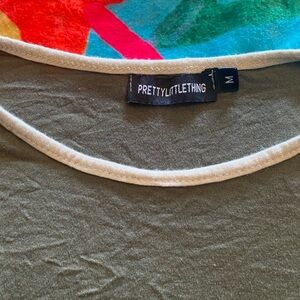 PrettyLittleThing Relaxed Green and Cream Crop Top
