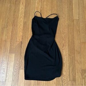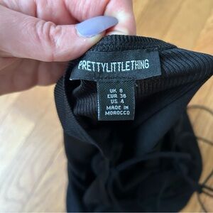 PrettyLittleThing Ribbed Lace Up Open Back Bodycon Black Mini Dress Size 4