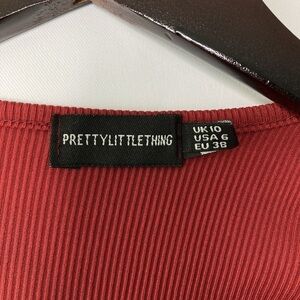 PrettyLittleThing Ribbed Tie Side Wrap Top Size 6