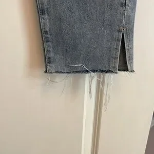 I wish these jeans fit me so bad because I LOVE them! They’re unfortunately a tiny bit tight. Both pants legs have slits and raw hem. Still in great condition.