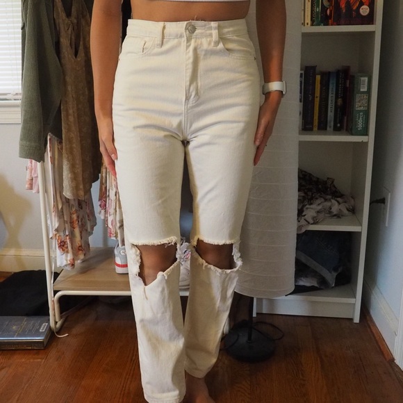 PrettyLittleThing Ripped Straight Leg Jeans