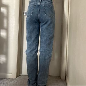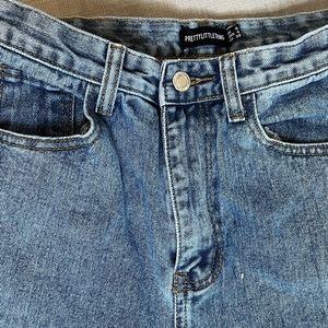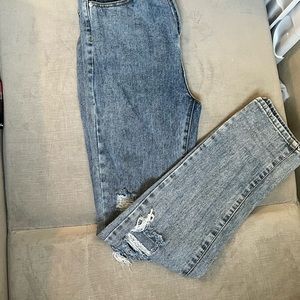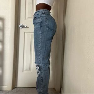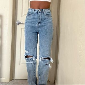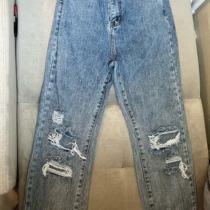 Baggy, cute, blue, true to size, nice condition PrettyLittleThings cute, ripped, straight leg jeans! Baggy, mom jeans, dad jeans, blue jeans, cute, in style, vintage, barely worn, great condition, love them.
