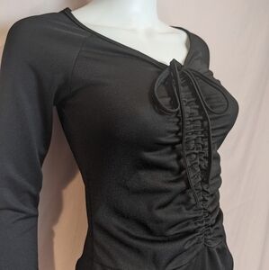 PrettyLittleThing Ruched Front Black Bodysuit size 6