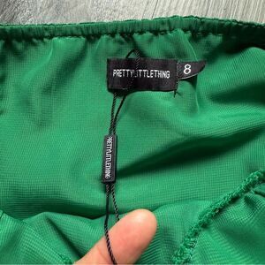 PrettyLittleThing Ruched Green Mini Dress Bow Tie Shoulders NWOT 4