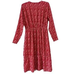 PrettyLittleThing | Rust Red Ditsy Floral Long Sleeve Tiered Dress, Size 4