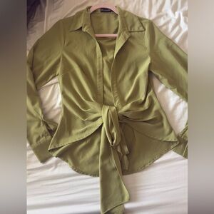 PrettyLittleThing Sage Green Tie up blouse