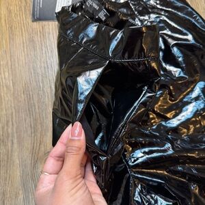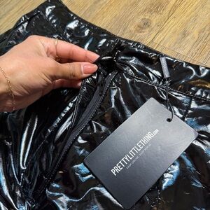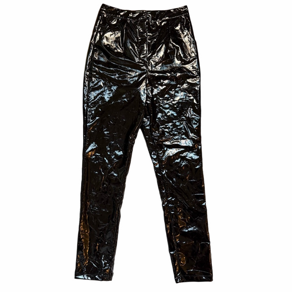 Glossy black vinyl pants with a sleek finish. NWT from PrettyLittle Thing - size 6(tall). Such a sexy look! Feathers two front pockets. High rise.
