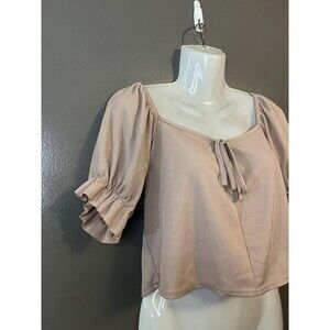 Design features: Elastic neckline with front tie detail; can be styled on or off the shoulder; short puff sleeves with elastic ruffled cuffs; cropped length; soft stretch rib knit; unlined and lightweight