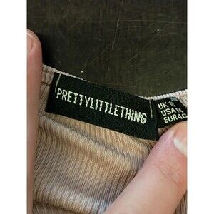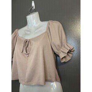 PrettyLittleThing Shirt Womens 14 Pink Ribbed Crop Puff Sleeve Tie Front Made UK