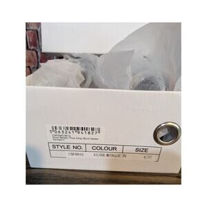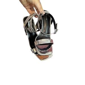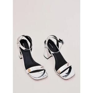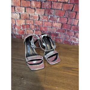 PrettyLittleThing Silver Metallic Ankle Strap Square Toe Block Heels Size 4