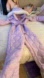 Cozy lilac jumpsuit with quilted design. Features a soft white fur trim. Perfect for lounging in style.