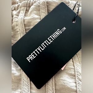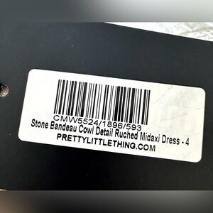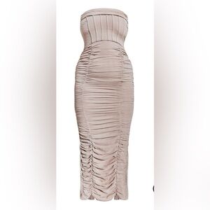 PrettyLittleThing Stone Bandeau Cowl Detail Ruched MIDI Dress
