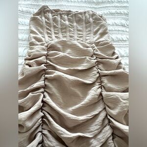 PrettyLittleThing Stone Bandeau Cowl Detail Ruched MIDI Dress Size 0