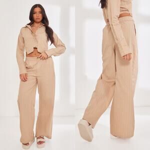 PrettyLittleThing Stone Poplin Pinstripe Crop Shirt 8 & Trouser 4 2 Piece Set