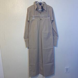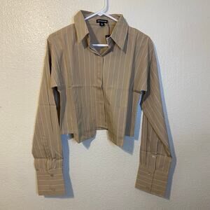 PrettyLittleThing Stone Poplin Pinstripe Crop Shirt 8 & Trouser 4 Two Piece Set