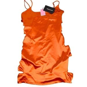 PrettyLittleThing Stretch Satin Cut Out Side Seam Strappy Bodycon Dress FLAWS!