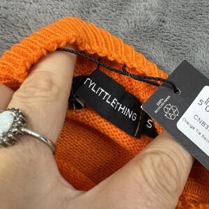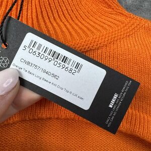 PrettyLittleThing Sweater Womens Small Orange Tie Back Long Sleeve Knit Crop Top