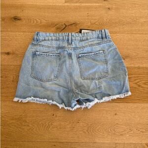 PrettyLittleThing - Mid Rise Distressed Denim Shorts in Light Blue Wash