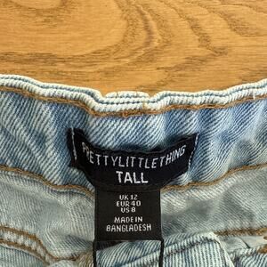 PrettyLittleThing - Tall Mid Rise Distressed Denim Shorts in Light Blue Wash