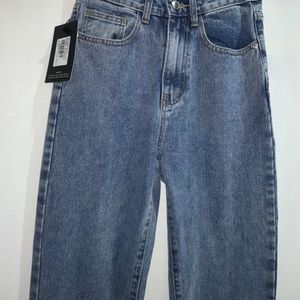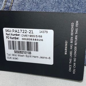 PrettyLittleThing Tall mid wash split hem jeans Sz 6 high waist New