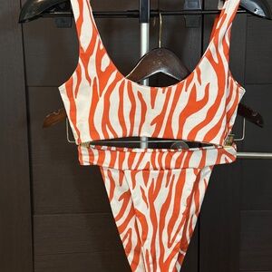 PrettyLittleThing Vibrant orange & White Swimwear (Size 4)