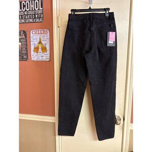 ripped mom jeans, high waisted jeans, washed black denim, edgy casual pants, women's mom jeans, UK size 8 jeans, casual black jeans, rugged chic jeans, trendy ripped jeans, relaxed fit denim, black distressed jeans