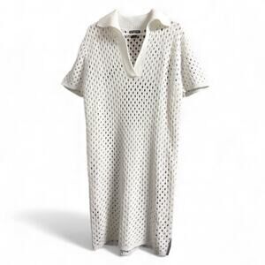 PrettyLittleThing White Eyelet Knit Polo Dress size XL