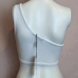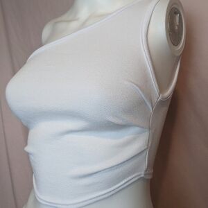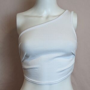 PrettyLittleThing White Ruched One Shoulder Asymmetric Crop Top size 00