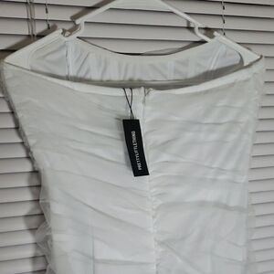 PrettyLittleThing White Ruched Strapless Sheath Dress