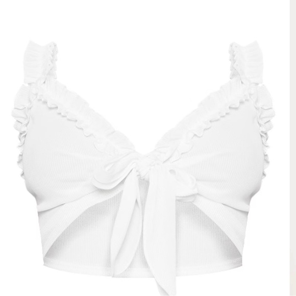 PrettyLittleThing White Ruffled Tie-Front Crop Tank