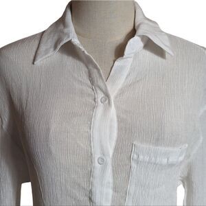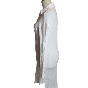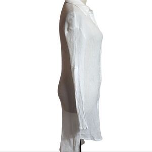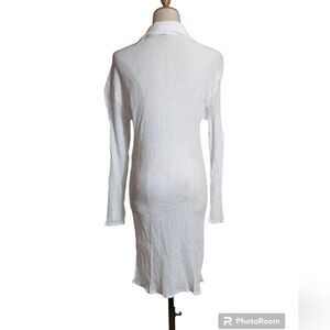 Sheer white dress with stretch. Shorter in front. Great simple beach coverup. Sleeves have roll buttons Good condition. Last pic is style idea with Gigi Hadid