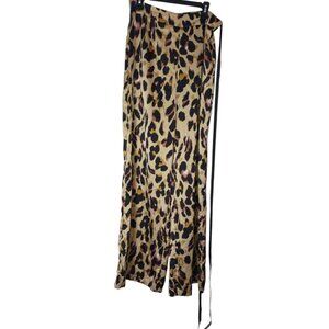 PrettyLittleThing Women 10 Brown Leopard Wide Leg Satin Pants Logo Trim Y2Kvibes