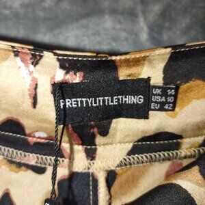 Stand out in these fierce PrettyLittleThing leopard print wide leg pants, featuring a silky smooth finish and bold black logo tape down the sides. The relaxed fit and statement print make them perfect for dressing up with heels or down with sneakers. Size 10 US / 14 UK / 42 EU. New with tags – ready to turn heads!