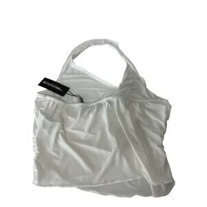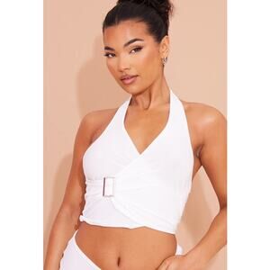 PrettyLittleThing Women 10 White Slinky Buckle Detail Top Halter Shirt NWT